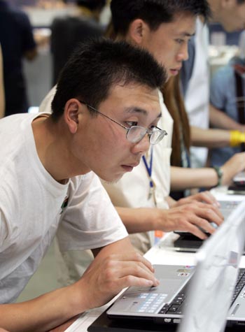 在第八屆北京科博會上,參觀者現場試用新型筆記本電腦。資料照片 |