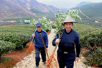 福建省建甌市東游鎮黨口村農民在茶山種樹!∮浾