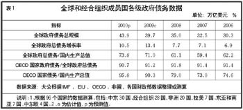 各國政府和中央銀行在2008年下半年和2009年采取的異乎尋常的財政和貨幣政策在恢復市場信心、改善全球金融系統穩健性、促進消費和投資方面取得了一定的成功,但也顯著增加了各國政府的債務負擔。大公估算2009年全球政府總債務達到了約39.7萬億美元的規模,占當年全球國內生產總值的71.0%,與2008年比增長了13.4%。在全球政府債務構成中,經合組織代表的發達國家政府債務規模最大,占全球政府債務總規模的91.2%,各級政府債務與國內生產總值的比率為90.3%,遠遠超過了發達國家政府債務占國內生產總值60%的警戒線(見表1)。大多數新興市場和發展中國家政府因推出財政刺激政策和財政收入下降導致債務規模也出現一定程度的上升。 此次全球經濟衰退的程度之深使多數國家政府都在2010年保持了不同程度的財政擴張計劃,政府債務規模將持續加速擴大的趨勢。大公預計2010年各國政府債務總規模將達到43.9萬億美元,比2009年增長10.5%,占全球國內生產總值的比重將上升到73.8%(見表1)。 發達國家債務增量仍占2010年全球債務增量的絕大部分。2010年發達國家的金融體系還存在較大壓力,信貸緊縮的局面將持續。貨幣政策雖然向金融體系提供了異常寬松的資金支持,但是銀行為降低風險暴露敞口并未將流動性以貸款方式傳導給實體經濟,導致貨幣政策效果欠佳。為鞏固來之不易的經濟復蘇前景,在失業率高企、私人消費和投資未出現強勁反彈的情況下,財政政策成為挽救經濟的唯一有效途徑,政府為拉動經濟增長、調整經濟結構還需采取擴張性財政政策。但是已經出現償債危機的部分國家,如希臘、葡萄牙、西班牙等不得不轉而采取財政緊縮政策。其他一些債務負擔沉重的發達國家,如意大利、愛爾蘭、英國、日本等也在著手財政政策的退出策略。但總的來說,發達國家在2010年擴張性財政政策全面退出的可能性不大。 東亞和拉美國家政府債務增長將趨于緩和。由于兩個地區主要是從外需方面受金融危機影響,在及時的政策措施調控下,內需得到有效調動,經濟復蘇前景較為樂觀。兩地區一些主要國家存在的問題是證券組合資本持續涌入,在未來幾年有推高資產價格、抬高匯率和引起通脹的風險。針對這些情況,大公預計兩個地區在2010年擴張性財政政策的力度將穩中有降,但在以基礎設施投資和結構性調整為主的國家,財政刺激下降幅度不會太大。 歐洲、獨聯體新興經濟體和部分中東國家,如土耳其和巴基斯坦等仍呈現強烈的融資需求。歐洲和獨聯體新興經濟體在新興市場國家中受金融危機打擊最為嚴重。由于一些中東歐國家的中央政府赤字和債務規模本已沉重,政府信用等級低,金融危機使其在國際金融市場融資變得更為困難甚至不可能,因此主要通過歐盟、國際貨幣基金組織或其他雙邊及多邊渠道獲得融資來源。大多數獨聯體國家中央政府歷史上債務負擔較輕,財政常年保持盈余,此次受金融危機打擊政府融資需求很大,預計債務還將保持持續快速上升的勢頭。