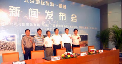 由中國國際旅行社總社有限公司與鳥巢、水立方、中央電視塔、國家大劇院四家北京地標性景點首度聯合推出的“北京地標旅游一票通”3日正式面市。國旅總社副總裁陳月亮表示,“一票通”的推出將會給游客提供一種新的到北京旅游的產品選擇,在價格上還能節省50元門票費用。