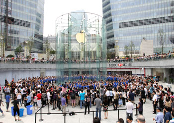 2010年7月,位于上海陸家嘴的中國內地第二家Applestore開業,人山人海。蘋果公司對待中國市場的態度與中國蘋果迷的熱情形成了鮮明對比。新華社記者 凡軍/攝 |