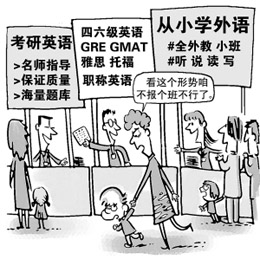 也許有人會問,目前世界范圍內不是也出現了漢語熱嗎?的確,全球學漢語的老外已超過了3000萬。然而,這些人大多數只把學漢語當作了解中國、經貿交往的一種工具而已。貼在巴黎街頭的一則醒目的海報這樣寫著:“學漢語吧,那意味著你未來幾十年內的機會和財富!蹦闱,人家是以“務實”為標識的。反觀吾國吾土,從社會到個人都被淹沒在英語的洪流中了。拿學位,評職稱,選人才,英語似乎成了首選的硬條件。一方面是母語的被忽視和玷污,另一方面則是英語的“一統天下”。英語霸權時代的漢語命運遭遇了尷尬。