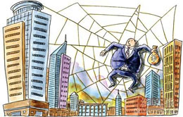 在上海,一張以土地審批權為核心的龐大利益網絡正在被揭開!吧虾7康禺a系統的一部分下海的前官員和退休的公職人員在許多房地產開發項目中扮演著土地中介的角色!狈康禺a行業近年成為官員“下!钡哪繕,早已是公開的秘密!保4月15日《珠江晚報》)