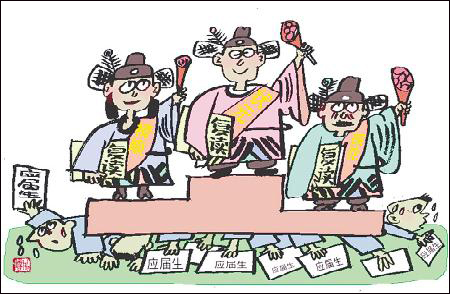 一項調查表明,復讀生已成為高考的主要參與者。2007年報名參加全國普通高校招生的1010萬人中,有289萬為往屆生,占28.6%。一個不可忽視的情形是,隨著就業壓力的增大,越來越多的學生希望進入名牌大學,導致復讀生的數量繼續上升。(