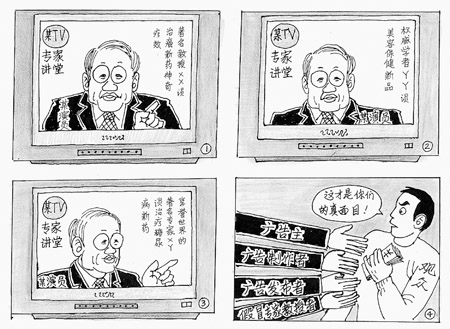 這些人用同一副面孔同時在多個廣告中扮演不同“專家教授”,內容涉及藥品、保健食品、性病?漆t院等等,堂而皇之的每天在某些電視臺上演,欺騙渴求健康、相信專家的人們。假冒專家代言做虛假廣告,在性質上應該與廣告主、廣告制作者、廣告發布者違法相當,同樣應該依法承擔連帶性民事責任。惟有如此,廣大消費者才能少被“忽悠”。