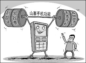一些讓人覺得不可能存在的、配備獨特功能的手機,現在也在中國出現了。比如帶有剃須功能的“剃刀手機”,能識別假幣的手機,在科幻動畫片中經常出現的道具手表也被開發成手機了。這些都是一些不出名的廠商靠創意打開銷路的做法。