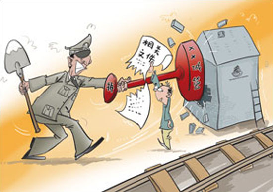 新聞:8日,武(漢)九(江)鐵路電氣化改造工程施工中,位于洪山區花山鎮的一處在建的通信機械室,被當地城管誤認為是“違建”而遭砸墻損毀。當時,11名城管隊員來到工地,僅向現場施工人員問了句“老板在不在”?緊接著便手持撬杠、洋鎬等朝已砌好的墻面上砸去。隨后趕來的工地負責人廖海,拿出相關文件向對方解釋也無濟于事。(本報昨日報道)