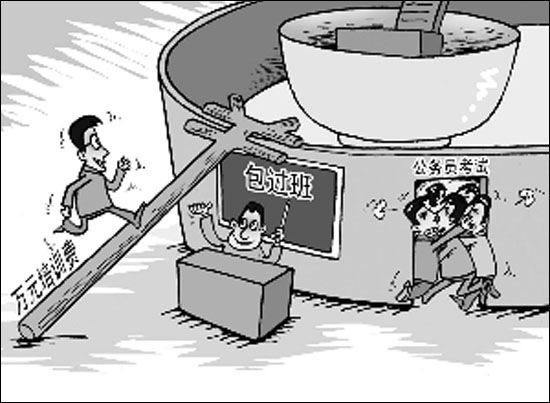 面對各地公務員報考的盛況,一些培訓機構趁勢辦起了所謂的“包過班”,每人報名費10000元,如事后還考不上,將退回5000元。有已連續兩年參加公務員考試的人認為這種培訓不過是噱頭而已,專家更大潑冷水。