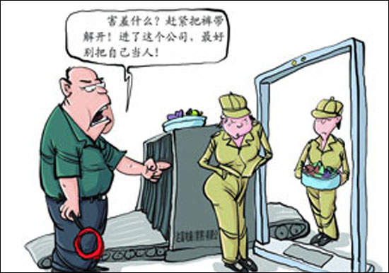 “8000位打工妹,是誰在光天化日之下脫去你的褲腰帶?”近日,網友報料:一家在華外企,下班時居然要求女工在眾目睽睽下解開褲腰帶接受安檢。(12月23日《南方日報》)