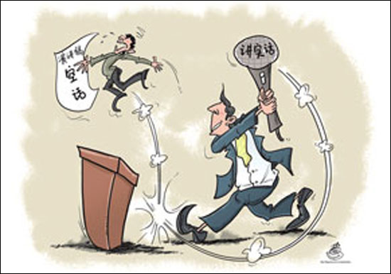 許昌市委書記在會議上對空話的“發飆”,不留余地,火力十足,讓很多人為之振奮,也收獲了很多贊譽。振奮和稱贊的原因,在于官員和老百姓都已經習慣了各種場合的空話、套話,終于有人站出來大吼一聲,不僅讓老百姓解氣,更是官場中的新鮮事。 但細想一下,講空話不是新聞,被轟下臺就成了新聞,并非是件讓人徹底放心的事情。無論市民還是公務員群體,沒有人會認為講空話是一件好事,“認真查找問題”、“反對作風漂浮”的要求也是年年在提,但結果卻是不僅空話本身成了空話,要求不講空話的規定也成了一句空話,只怕這才是問題所在。 書記對空話不滿,這或許值得嘉許,但更多的書記恐怕早已習慣了聽空話,甚至講空話。在權力對上負責的層級制下,上級的怒斥往往成為佳話,但也僅此而已。如果由人民評判的制度落在地面,講空話便不是被斥責這么簡單,不良的官場風氣才有改進的可能。 |