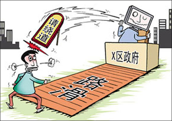 市民在哈爾濱市政府網站反映南崗區政府門前大理石步道板雨雪天氣濕滑難行,官方回復是“可以繞行,沒必要非在其上面走”。
