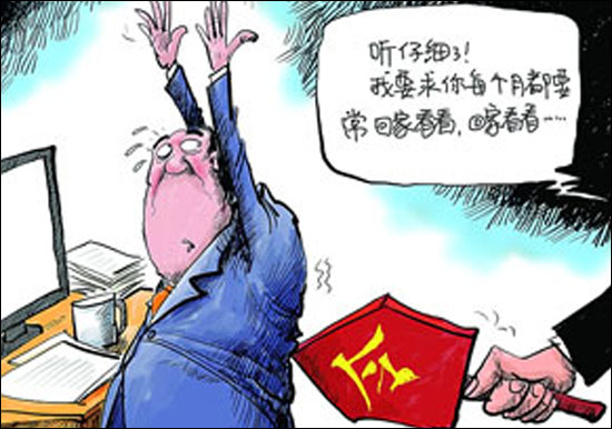 日前,四川巴中市委、市政府要求全市副科級以上的干部,每個月必須回到自己的出生地或成長地的村或社區,住兩天以上,加強同父老鄉親的感情交流、工作聯系,并要向所在單位寫個人心得體會。(1月26日 《人民日報》)