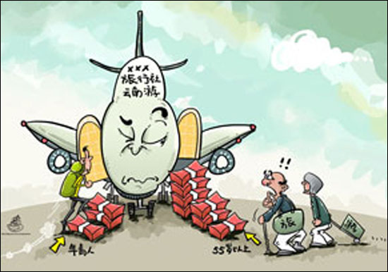新聞:1日,市民袁女士和老伴在—家旅行社遭遇“云南游”漲價風波,該社正常報價每人2200元,但當工作人員得知兩位老人都已超過55歲時,卻要他們每人另加300元“購買能力費用”。據了解,這是云南旅游線路的潛規則,原因在于老年人收入較低、消費理性,大都不會在購物點消費,導游和司機拿不到回扣。