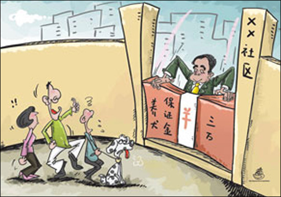 在交納3萬至8萬元的保證金后才能養狗。最近,陜西寶雞市寶煙社區制定的《社區養犬管理辦法》(討論稿)一經公布,立即在社區引起軒然大波,支持和質疑的聲音此起彼伏。(2月10日《華商報》)