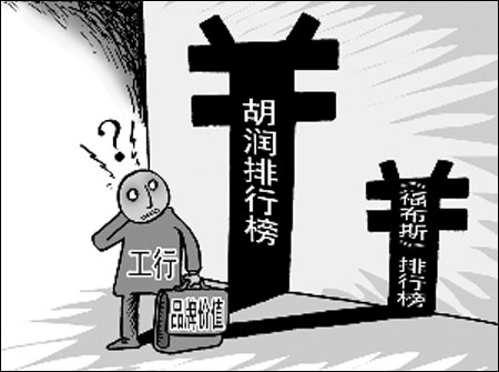 胡潤研究院和《福布斯》中文版近日相繼發布中國品牌價值排行榜,分別評出前100名和50名?闪钊税偎疾唤獾氖,評估同一品牌,兩者的結果竟大相徑庭。比如工商銀行的品牌價值,相差達三倍之多。這是怎么回事?