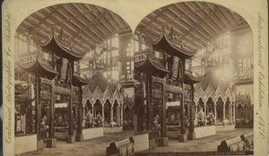 目前已知中國參加世博會最早的照片,是中國參加1862年倫敦世博會的一張立體照片。不過當時中國的參展規模還很小,沒有單獨的展館(Pavilion),只是在主展廳內設置的一個小小的中國展區(Court)內展出一些茶葉、陶瓷等中國土特產。 1867年4月1日至11月3日,第五屆世博會在位于巴黎七區的戰神廣場舉辦,中國在這次世博會上第一次有了自己獨立的展館,從這張中國最早的世博會中國館老照片我們可以看出中國當時參展的規模,入口處牌樓上的題字把中國館的主要特點都介紹出來,中間大字題寫“中國館”,下方為題字“花園、博物館和茶藝小姐”,牌樓左邊寫的是“演出廳”,而右邊寫的是“咖啡館、餐館”。正是牌樓上提到的茶藝小姐,在該屆世博會中國館出盡風頭。 在這批世博會老照片中,兩位中國姑娘的合影名片照片格外引人注目,這是目前為止發現的中國人參加世博會最早的人物照片。 在世博會舉辦期間,國外報紙對當時的中國館有這樣的報道:“世博會還有一個國際演出廳,但目前尚未完工。法國演出廳將與它共同舉行落成典禮,隨后,已經在巴黎的RISTORI女士將在這里舉行一系列的演出。來自其他國家的其他藝術家也緊跟在后。中國人的努力使他們的場館能夠按期完工,他們的演出廳已經投入使用,演出廳本身是中國茶園的一部分,而中國茶園又是世博園的一大亮點……在中國館,你可以要一杯香茶。評論家說這樣的茶以前在歐洲人們還沒有品嘗過。在一個漂亮小杯子的底部放一點點茶葉,沖入開水,一種馨人肺腑的香味立即散發出來,這樣的茶水是不用加糖或奶飲用的。當然,園中有一個小店是專門賣茶的,而那里最引人注目的就是兩個中國姑娘了。她們很漂亮,而且人們把她們想象得更加漂亮,因為這里難得見到中國美女。兩位姑娘來自中國的福建省,她們分別有一個動聽的名字阿彩(A-PCHOE)和阿妮(A-NAI)。她們到巴黎來,與其說是在工作,不如說給這里增光添彩。兩位姑娘在這里為人們倒茶服務,唱歌跳舞,成為該屆世博會人們關注的一個中心”。 《愛麗絲夢游仙境》的作者路易斯·卡羅,在其1867年與朋友出游俄羅斯時途經法國,正值巴黎世博會舉行。他在1867年9月9日至12日的日記中簡略記錄了自己參觀中國館的情形:“我們漫步穿過外面的廣場,來到正在表演中國音樂的中國館,付了半個法郎進去近距離傾聽。顯然這半個法郎是千值萬值的,在館內和館外的感覺完全是兩碼事!僅從外面就能讓人感覺到它是兩個館中最吸引人的! “在餐館中則有一位正宗的中國廚師,其廚藝據說是一流的。如果你喜歡,你可以要一碗燕窩粥,當然這是一種豪華的享受,一碗燕窩粥的價格高達20法郎!