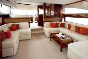 Princess62全長19.3米,寬闊的船體承載了巨大的內部空間。位于底層的休息區擁有包括主臥在內的四個臥室,精致的船艙設計可同時容納8人居住,如有需要還可在船尾加配一個船員艙。臥室旁均配有獨立衛生間和浴室,注重私密性,使用方便。中后部的主人房和前部的第一客臥艙分別在一側和頂部設置了窗口,讓人可隨時隨地欣賞到窗外海景和天空。房間內部裝飾典雅、高貴,精心排列的射燈布局更為房間營造出溫馨柔和的氛圍。 與以往的型號相比,Princess62配以流線加速、高巡航速度以及容易上手的導航控制臺,實現了航海進程中極致的操控享受。