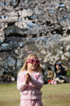 新宿御苑位于東京繁華的新宿中心地區,占地達58.7公頃,在寸土寸金的東京,這個廣闊的城中花園給繁忙的都市人提供了一個休閑好處去。其庭園設計獨特,將法國式整形庭園、英國風景式庭園以及日本庭園這三種不同的園林風格巧妙地結合在一起,是為數不多的日本風景式庭園中的代表作。約1500棵櫻花樹成為春天東京的著名賞櫻勝地。 新宿御苑內的櫻花品種多達75種,包括里櫻、染井吉野櫻、山櫻、大島櫻、枝垂櫻等,其中不少都是在日本其他地方少見的櫻花樹種。 和上野公園氣勢磅礴的櫻花樹叢不同,新宿御苑的櫻花是點點散落的,草地邊,池塘旁,小道中,低頭水中花,抬頭枝上綻,人在花中,花在水中,人與自然交融成一體。 和上野公園一樣,來新宿御苑賞櫻的人群也分為兩大類,一類是游山玩水型的,一部相機走天下;另一類是安營扎寨型的,一塊帆布安當家。在新宿御苑里分布著成片的大草坪,被茂盛的櫻花樹環繞著,后一類賞櫻者以草地邊的櫻花樹為中心,先來后到依次占據一片空地,鋪上一塊帆布,壓上幾瓶啤酒,擺上自帶的便當,躺在軟軟的草坪上享受春天的溫暖,很快大片的草坪就被瓜分完畢。不過由于新宿御苑面積足夠大,所以涌進再多的賞櫻者也不顯得十分擁擠。 每年春天,日本首相都會在新宿御苑舉辦超大規模的賞櫻會,廣邀社會各界和外國使節上萬人共同賞櫻,場面極其壯觀。