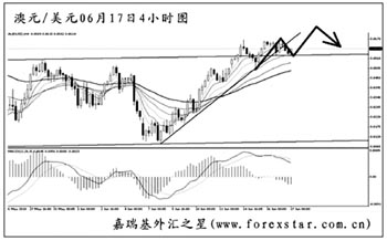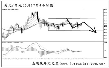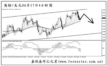▲美元兌日元延續著自身震蕩的走勢,從圖上看,匯價運行在一個震蕩區間之中,此區間為前方下跌的次要節奏調整,后市向下突破的希望較大。這次震蕩時間已經超過了一周,預示著距離行情暴發已經不遠。交易上以做空為主,同時關注突破后跟進的機會。
