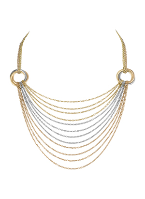 卡地亞Trinity三色金全新系列以黃K金、白K金或玫瑰K金打造,彼此交纏,并垂掛一束精致流蘇,更顯輕盈靈動。此款高級時裝珠寶系列賦予項鏈、手鏈、長項鏈、胸針和領帶一種精巧的流暢之美,搭配由卡地亞精心制作,輕柔曼妙,充滿現代氣息的編織流蘇墜飾,并以三色金環扣固定。