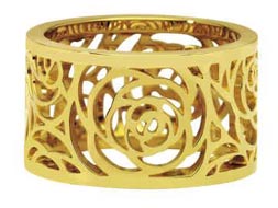 將Chanel 經典的山茶花造型巧妙地運用到珠寶上,優雅迷人。這個系列的作品有很多,材質有黃金亦有鉑金,款式則囊括了手鐲、戒指、耳環、項鏈等眾多款式。其中最特別也最閃亮的是一款鑲嵌有鉆石的手鐲表,堪稱珠寶表的典范。