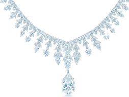 自1837年成立以來,蒂芙尼就以出品世界上最精美的鉆石著稱。這些無與倫比的精美鉆石在顏色、凈度和切割工藝上都遵照最高標準,鑲嵌在精致底座上散發流光溢彩,演繹著現代奢華。這件驚艷之作傳承了蒂芙尼一貫追求的卓越品質傳統。鉑金鑲嵌手工切割的圓形和梨形鉆石圍繞著一枚30.31克拉、凈度為IF(內部無雜質)級的鉆石吊墜。項鏈與女性優雅的頸項曲線完美契合,星光熠熠,彰顯奢華氣質。