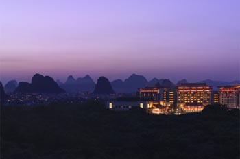 Highlights:建筑外觀:為了讓所有客房均能享受到最佳視野,酒店的高度僅有七層,但橫向跨度極大,整個樓群呈扇面展開,再以中國傳統的飛檐式屋脊加頂,呈現出一派古今結合的外觀。 臥室背景墻:每間臥室的背景墻都是一幅桂林山水圖,且間間不同,畫面中的桂林山水與窗外的風景虛實對照,相映成趣。 Must