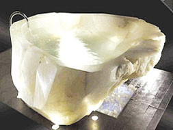 一個意大利生產的精美絕倫的水晶浴缸日前開出了79萬美元(約合人民幣535萬元)的高價!這個長2米、高55厘米的浴缸來自意大利,是用一塊巨大的白色水晶石雕刻而成的。這塊水晶石于2006年在巴西亞馬孫河流域被開采出來,外表看上去完美無瑕而且晶瑩剔透,經萃取后原封不動地送往意大利。在那里,別具匠心的設計師把它打造成一個美輪美奐的浴缸,并精選鉆石配飾加以點綴。
