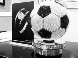 世界上最昂貴的足球在哪里?日前著名的珠寶設計家雅爾·西曼斯基制造了一個世界杯紀念足球。讓人咂舌的是,這個足球價值160萬歐元(超過千萬元人民幣),因為它的表面全部是由昂貴的鉆石鑲嵌而成的。這個珍貴的足球鑲鉆3500克拉,重2.2千克。目前這個鑲滿鉆石的足球陳列在西曼斯基的商店里,他將會將這件寶物拍賣,然后將所得捐給當地的慈善機構。
