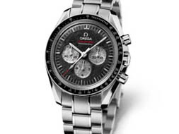 1975年7月17日,當美國宇航員陸軍中將托馬斯·斯塔福德和前蘇聯宇航員陸軍中將阿列克謝·列昂諾夫在連接各自太空飛船的對接艙口握手時,這兩位太空先驅與他們的宇航員同伴均佩戴有歐米茄超霸專業計時表。為紀念這一歷史性握手35周年,歐米茄特別推出超霸專業月球表阿波羅—聯盟號“35周年紀念版”計時表,限量1975枚。該款腕表表盤由進入地球大氣層、高速撞擊陸地表面后殘存的隕石制作而成,隕石表盤的黑色是表面氧化作用的結果,銀色秒針和計時器小表盤均展現出隕石的自然色澤。