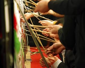 走進船塢劇場的后臺,23歲的演員王貞超正蹲在地上,耐心地用各種工具一點點修復破損脫落的皮影道具。作為上海木偶戲團的年輕演員,王貞超也算得上主力,既能演戲,又能修復。 “這樣的孩子,在我們這里是很不容易的!敝谱魅擞趹涋r說,此次為了在世博園中的演出,僅《三國演義》一部戲,就有35位演員要輪班演出,幾乎沒有時間休息。離開北方土地的皮影,在上海潮熱的梅雨天氣也極不適應,有的變形卷曲,有的疲軟斷裂,有的發霉惡臭;旧厦刻煅莩鼋Y束后,都有斷胳膊少腿的皮影需要修復。為此,王貞超必須為那些卷曲斷裂的牛皮影找一塊透明的塑料固定起來。 “天熱的時候,這兒的演出環境至少是40攝氏度以上,演員們頭頂上是10盞1500瓦的燈泡!焙螘孕钦f,露天劇場沒有裝空調,也不敢開電扇,怕吹皺了幕布影響演出效果,只能硬挺著。更糟糕的是,由于船塢劇場在地下四層的位置,任何房間走進去都是一股霉味,蚊蟲肆虐,愁壞了劇團。他們索性在每次演出后將所有道具費力地搬到樓上,避免受潮,精心保護。 “每天演出兩場皮影戲,對演員是高強度的訓練!庇趹涋r指著《三國演義》道具中的一只“怪獸”說,“這東西足有1米多長,3斤多重。過去的演員都是一人操控幾個角色,皮影很小。但為了讓觀眾看得清楚,我們的道具都做得偏大,為了讓動作更細膩,關節設計了十多個,所以需要兩三個人同時操縱一個角色! 住在嘉定的王貞超,每天早上7點半出發去世博會,有時要到晚上七八點才能回去。那些快退休的老演員,或是18歲的年輕演員,在世博會期間都過著這樣的忙碌生活。 “通過世博會的磨練,我覺得傳統皮影戲和木偶劇是后繼有人的!眻F長何曉星很慶幸有世博這樣的機會,既展現了中國傳統文化,又鍛煉了團隊,“我們這次的演員,很多都是‘80后’、‘90后’的孩子,他們成長非?,也真正地對傳統藝術產生了興趣! 何曉星說,兩年后,上海木偶戲團將有一大批一線老演員紛紛退休。但他一點也不擔心,眼前這些“80后”、“90后”的本科生與研究生們,將是傳統藝術未來的接班人。