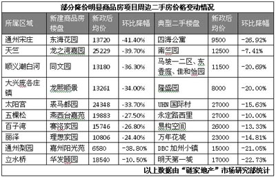 新政后百天,153個新盤成交價下降,帶動所在區域二手房降價明顯。新房與二手房同時出現了從新政前價格齊漲到新政后價格齊降得現象。