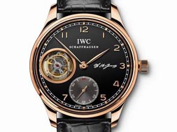 請注意,來自正西270度的一股強烈旋風正在接近。這并不是天氣警報,這是對全新葡萄牙陀飛輪手動上鏈腕表最好的概述——法語中的陀飛輪就是旋風的意思。旋轉框架中的擒縱機構同樣清晰地展露在9點鐘位置,以航海的說法就是正西270度。葡萄牙陀飛輪手動上鏈腕表沿襲限量版葡萄牙三針一線陀飛輪腕表的風格,將小時顯示單獨設置在一個小表盤上,精妙的設計特別奉獻給熱愛早期天文臺表的人士。 全新的葡萄牙陀飛輪手動上鏈腕表配備雅致的燕尾式指針和鐵軌式分鐘圈,在外觀上保留了葡萄牙系列的鮮明特色。只要葡萄牙陀飛輪手動上鏈腕表一露面,總是成為眾人矚目的焦點:一開始,它只是從佩戴者的恤衫衣袖下嶄露一角。然而,它那醒目的特征昭示著其身份:一款葡萄牙腕表、一款精良的標志性杰作,其表盤上還印刻著公司美籍創辦人佛羅倫汀·阿里奧斯托·瓊斯剛健有力的簽名。當最后三分之一的表盤從衣袖下完整展現時,懸浮的分鐘陀飛輪才正式亮相,完美展現其表中貴族的身份。陀飛輪一直被認為是高超技藝和精致鐘表品位的象征。面對如此精密運作的機械構造,任誰都會贊嘆不已。 延續傳統的信念同樣體現在制作葡萄牙陀飛輪手動上鏈腕表的技術中。通過透明藍寶石玻璃表底清楚可見IWC萬國表自制98900型機械機芯。在沙夫豪森表廠眾多歷史悠久的著名懷表機芯中,它是新起之秀,而且非常適合搭載于大型手動上鏈腕表中。早在1930年代后期,首批面市的葡萄牙系列腕表已經配置了懷表機芯。它建立在1920年代推出的98000型機芯家族的基礎上,經過幾十年的打造和完善,現在已經是集優良傳統與前沿制表技術于一身的典范之作。精心裝飾的3/4夾板以鍍鎳銀合金制作,體現最早期瓊斯機芯的設計原則。視覺上承襲傳統的特征則體現在分鐘陀飛輪上帶有黃金徽章(Probus