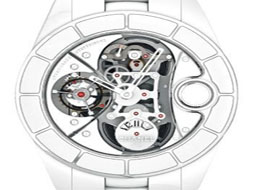 聞名于表壇的J12十周年慶,品牌決定獻給鐘表界一只獨一無二的神秘復雜腕表,它不但具備了陀飛輪、飛返分針以及配備離合系統的表冠三項精密的復雜功能,而且革命性地將表冠置于表面之上,分針不只是沿著表盤走動,同時還要繞著表盤上的表冠走動,最特別的是在每小時10與20分之間,繞表盤走動的分針將逆時針走動10分鐘,這個飛返,并不是瞬間跳回起點,那樣有違香奈兒女士所倡導的優雅原則,所以經歷10分鐘的時間由10分開始,飛返至20分位置,然后繼續工作。