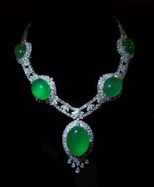 靈活地分拆或組合成多樣款式,無論獨處時或是群體時都綻放光芒,可謂粒粒天皇巨星。 整套首飾寓意在一個大家族里,各成員除可獨當一面、各自發揮外,更能在聚首一堂時,互相依傍,融洽相處,彰顯大宅門家道興旺氣派,這套產品的誕生是基于天、地、人的配合。整套首飾系列展現天然翡翠碧綠通透、亮麗晶瑩之美,散發奪目耀眼的光芒,盡顯高貴優雅的氣派,屬難得一見的稀世極品。