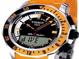 戴上這款表,全世界的人都會知道你是個潛水愛好者,搶眼的熒光桔黃、blingbling銀雖然在五彩斑斕的水下世界中并不搶眼,但在以黑白灰見長的男人群中實屬高調亮相。除此之外,以“觸控”技術享譽腕表界的天梭也沒讓潛智系列成為例外,在用食指一下一下觸碰表盤的時刻,你不但獲得了潛水深度、下潛速度、萬年歷日期、指南針、雙時區、數字式讀秒計時、響鬧、以及溫度測量等信息,同時再次成為身邊所有人目光的聚焦點,你是位初級潛水發燒友兒的信息將會準確而完整地傳達給每個人。