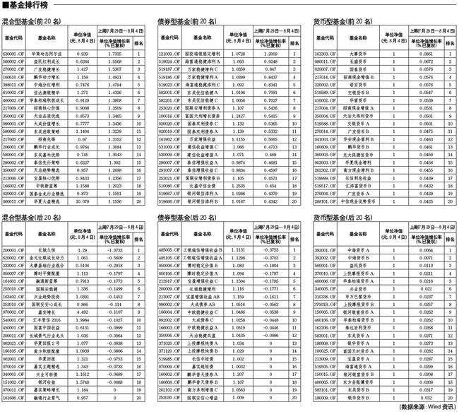 混合型基金排行榜[2010-08-06]