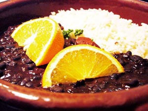 然而巴西的國菜并非巴西烤肉,而是Feijoada。Feijoada源自葡語,意為“豆子燉肉飯”,又名“奴隸飯”。由巴西黑豆加咸肉、香腸、豬蹄、豬口條、豬尾巴、豬耳朵、豬排骨、煙熏干肉,一同放入巴西泥鍋經小火燜燉而成,就著米飯、切成細條狀的甘蘭菜(Coure)、奶油木薯面(farinha)和切片的柳橙(Laranja)食用。每逢周六,巴西各大餐館都會為顧客準備熱氣騰騰的Feijoada。巴西人說,吃完這道菜后就沒法回去上班了,原因很簡單——吃得太飽。 沒人想到這個最初不經意的奴隸飯卻成為了今日的國菜。很久以前,貪心的奴隸主為了省錢,將豆子和廚房剩余邊角料以及豬肉雜碎混雜在一起煮給黑奴吃,幾個月后發現奴隸活沒少干,身體卻逐漸強壯,于是暗中監視奴隸的一舉一動,終于發現一切源于奴隸的一日三餐!Feijoada營養價值很高,初次品嘗的人切忌吃得太多,否則會引起腸胃的不適。 巴西人還熱衷“火鍋”Fondue。跟阿爾卑斯山區的一樣,鍋中只有Cheese。酒精爐上,隨著陶制小鍋里溫度的升高,奶白色的Cheese在小半鍋的葡萄酒液中漸漸融化,就可以開吃了!切成方丁的面包、燕麥包、茴香洋蔥面包,草莓、葡萄、香蕉都可以成為火鍋的配菜,無需等候多時,只要用一支手柄很長的叉子插上配菜放到溫暖的陶鍋中蘸著香濃的芝士就可以了。初入口時味道微苦,但只需一會兒,那一絲苦味兒就會被濃厚的奶香代替,一個溫暖甜蜜的夜晚由此開始!