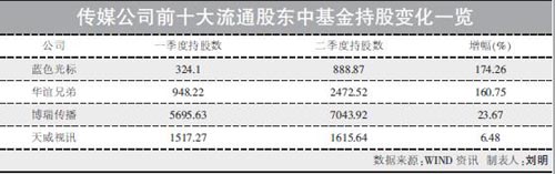 傳媒公司前十大流通股東中基金持股變化