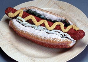 Ed Bing Lee 花費了25個年頭來完善他的編織技藝,現在他可以運用繩條材料創作任何一種事物,而這組作品利用的是條條絨線,創造針織衫般的美食。