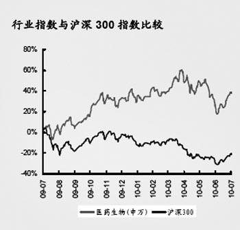 華林證券發布報告稱,雖然7月上旬至中旬,醫藥板塊表現一直弱于大盤,但是下旬開始,板塊表現稍強于大盤。從整月表現來看,醫藥板塊有近14%的漲幅,上演了大跌過后的估值修復行情。前期行業利空政策有所消化,加上主要公司中報業績良好,市場對醫藥行業的前景仍存較高的預期。 華泰證券提供的數據顯示,7月1日至8月6日,醫藥生物指數和滬深300醫藥指數分別環比上漲了13.5%和14.8%,相對A股走勢分別超越了2.6和4個百分點。以2008年10月份為基點進行對比,醫藥生物指數和滬深300醫藥指數至今已分別上漲了155%和147%。