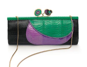 看出包扣是什么了嗎?沒錯,眼睛,還是眼睛!這正是Party系列的點睛之筆。出席晚宴或派對,只需以這樣一款出色的晚宴包來搭配簡約禮服,便能瞬時謀殺菲林無數。三款魅力十足的晚宴包,無不乖張靈動,華麗的蛇皮鑲邊,金色、黑色、粉色、紫色等的心機搭配,挑戰著你的視覺品味。想要在Party上來點不一樣的感覺,就信心滿滿地帶著它去盡情炫耀吧!