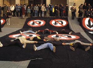 | 1989年2月,第一個中國現代藝術大展,藝術家們在不準調頭的標識上展示創意。 | 我們的工作室越來越大了,我們的展覽越來越多了,我們的飯局越來越豪華了……我們的思念越來越淺了,遺忘能力越來越強了,孤獨越來越深了,記憶越來越短了,我們的過去越來越遠了——