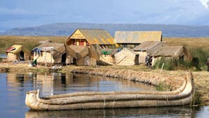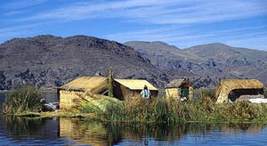 600多年前,為逃避西班牙和葡萄牙的殖民統治,烏魯斯族人來到蘆葦叢生的湖上,依湖而居,從此成為這里的主人。 起初的烏魯斯人,用蘆葦、蒲草編成厚實的蘆席和蒲席,再編成草船,在船上生活。后來,他們把幾條、十幾條草船連在一起,成為更穩定的住所,浮島就這樣出現了。隨后,他們又編出了精巧的房屋,F在,湖上的浮島有60多個,小的有籃球場那么大,大的竟設有郵局、小學等公共設施。 踏上秘魯的的喀喀湖上的浮島,你會感覺天是那樣近。腳下松軟的蘆葦蒲,不時發出“吱吱”聲,訴說著在此繁衍生息幾百年的烏魯斯人的故事。湖面波光粼粼,穿著五顏六色民族服裝的土著,是島上最鮮活的景物。