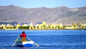 上島要穿防水鞋 近年來,秘魯政府開發旅游業,浮島的神秘生活逐漸向外界打開。湖中有40多個浮島供人游覽,最大的有6公里長。 初上浮島的人,實在受不了那里晃晃悠悠的感覺。每走一步,腳都會有輕微的陷落感,讓你不敢使勁落腳,以免把島面踩漏。當地導游一再提醒游客,去浮島要穿防水功能好的鞋,因為你每走一步,都會有湖水滲上島面! 浮島每3個月要重建一次。每隔兩周,島上須鋪上新的蘆葦,當下面的蘆葦越積越厚,碰到湖底時,這個島就要被遺棄,重做一個新島! 來浮島參觀,一定不能錯過蘆葦草船制作過程的參觀。據說草船編織技術世代都通過口耳相傳。因為“的的喀喀”在土著語中是“豹”的意思,所以船頭多扎成豹子頭模樣。只需一個小時,一名熟練的工人就可以編好草船頭。當地的男人們,每天除了打魚,剩下的時間就是在用蘆葦造船,因為這種船只能用6個月左右。 踏上秘魯的的喀喀湖上的浮島,你會感覺天是那樣近。腳下松軟的蘆葦蒲,不時發出“吱吱”聲,訴說著在此繁衍生息幾百年的烏魯斯人的故事。湖面波光粼粼,穿著五顏六色民族服裝的土著,是島上最鮮活的景物。