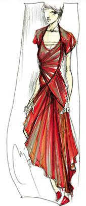 設計師鄒游為VOGUE五周年創作時裝的設計圖稿。 |