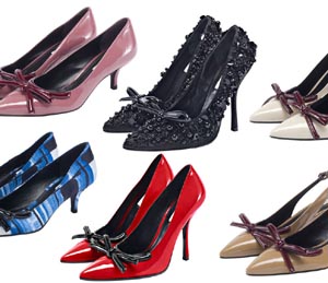 “Fiocchetto”女鞋主要鞋款有淺口鞋款和涼鞋,都帶有蝴蝶結 (Fiocchetto) 裝飾,靈感源自20世紀50年代的流行風潮。尖頭、細高跟是“Fiocchetto”女鞋的主要特點,作為2010/11秋冬系列而推出!癋iocchetto”女鞋采用多種材質制成, 部分款式通過運用不同材質的搭配, 形成獨特的顏色對比。設計款式眾多,包括漆皮、鱷魚皮紋、拉西米爾綢(radzmire)和繡花鍛等。 “Fiocchetto”女鞋鞋款可選顏色非常豐富。