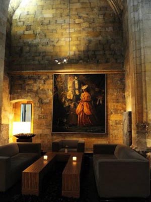 Starck)和沃斯(RoderickVos)等這些國際設計界“超白金”設計師的現代時尚家具,哥特式尖頂下穹頂上宗教故事的壁畫,搭配上透明玻璃的電梯,一座大隱于市的教堂酒店就這樣誕生了。