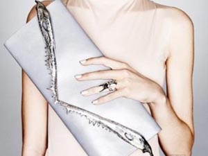 Dominic Jones的首飾系列風格一直游離在自然和優雅時尚之間,但也許它那瘋狂的外表會嚇走很多人。這次的最新系列中犀牛角的戒指,鯊魚鋸齒狀的手袋裝飾邊,短吻鱷頜齒的夸張手鐲,都是本季的最大亮點。