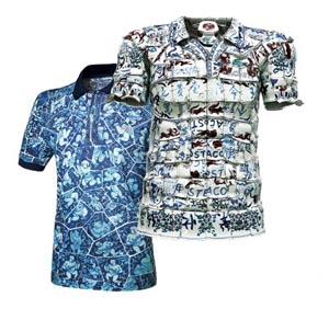 片,女裝Polo 衫用了304 片),并在真人尺寸的數碼樣板上將它們一一拼至Polo 衫的前身、后背以及袖子上,制成了一件青花瓷的Polo
